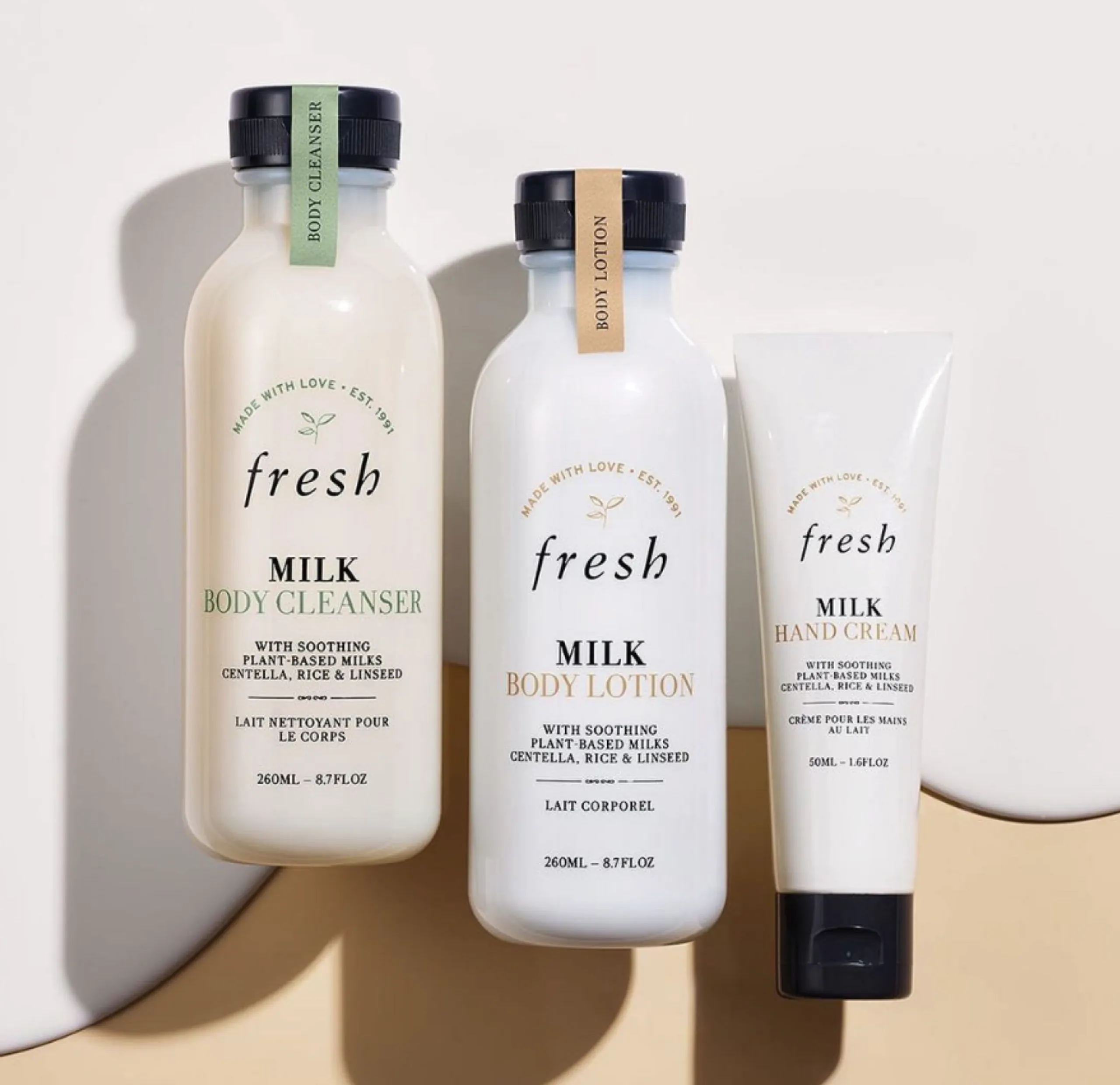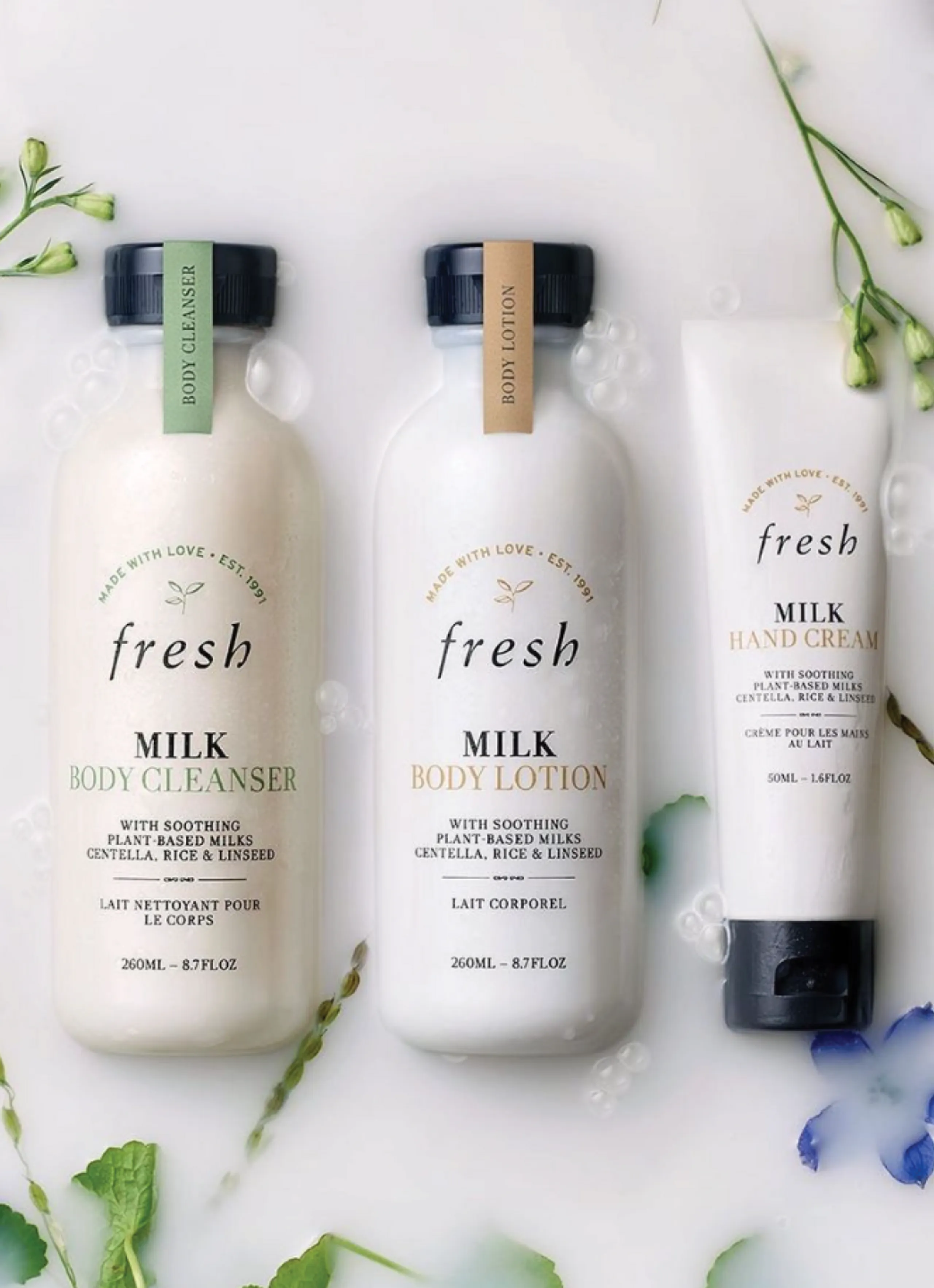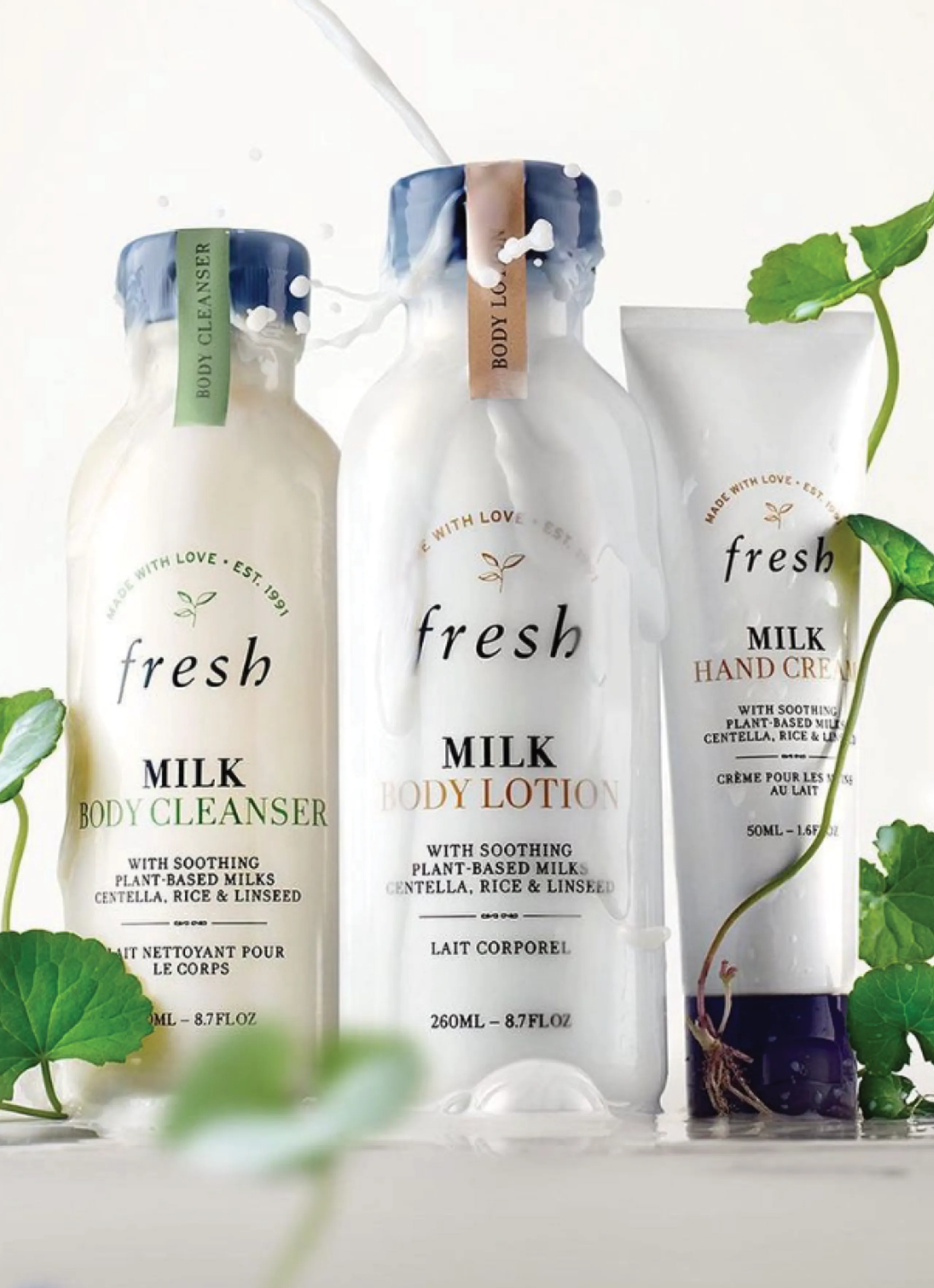 Update the look and feel of Fresh’s Milk collection. We wanted to modernize it while linking to the Fresh brand history and codes.