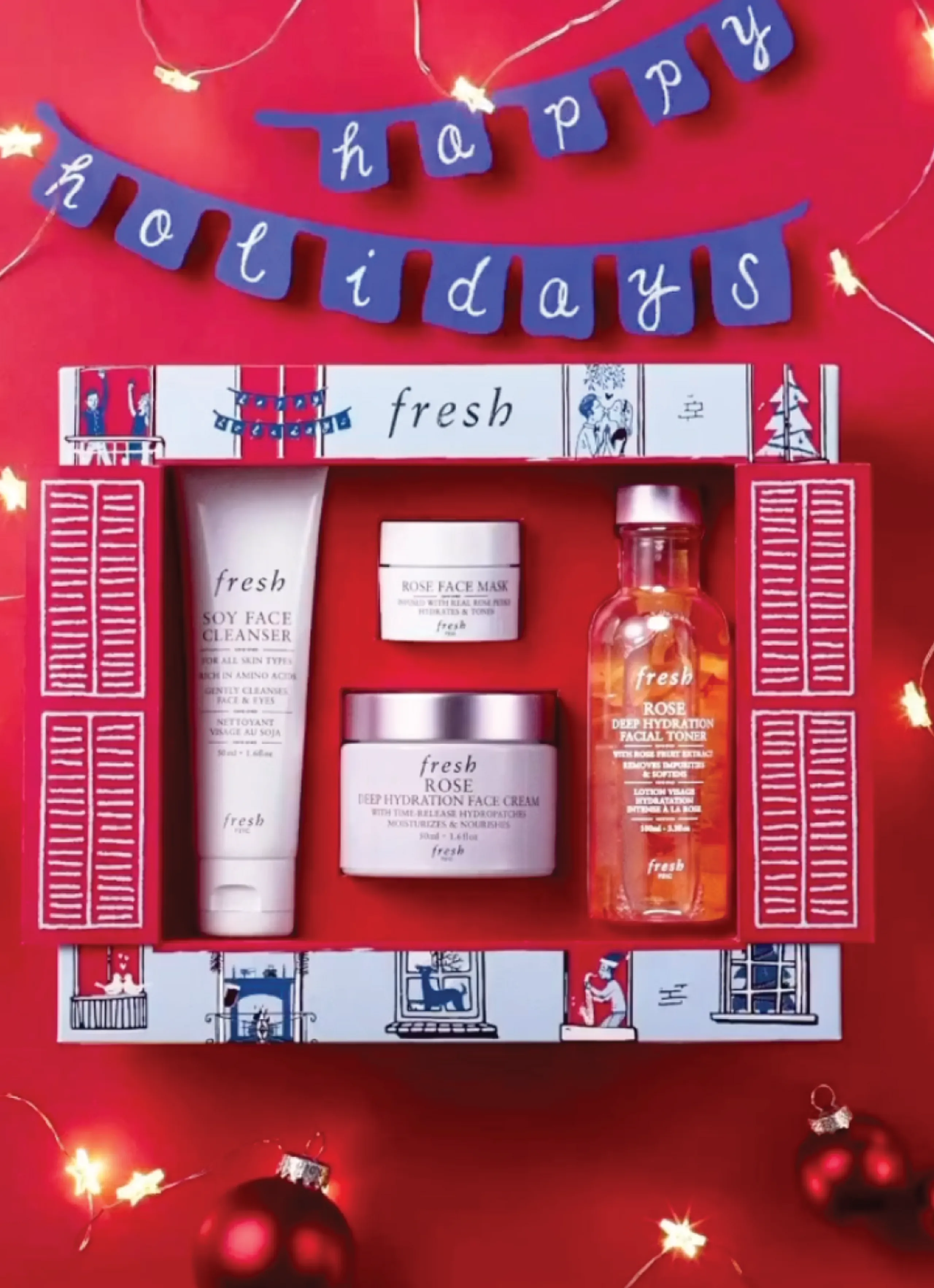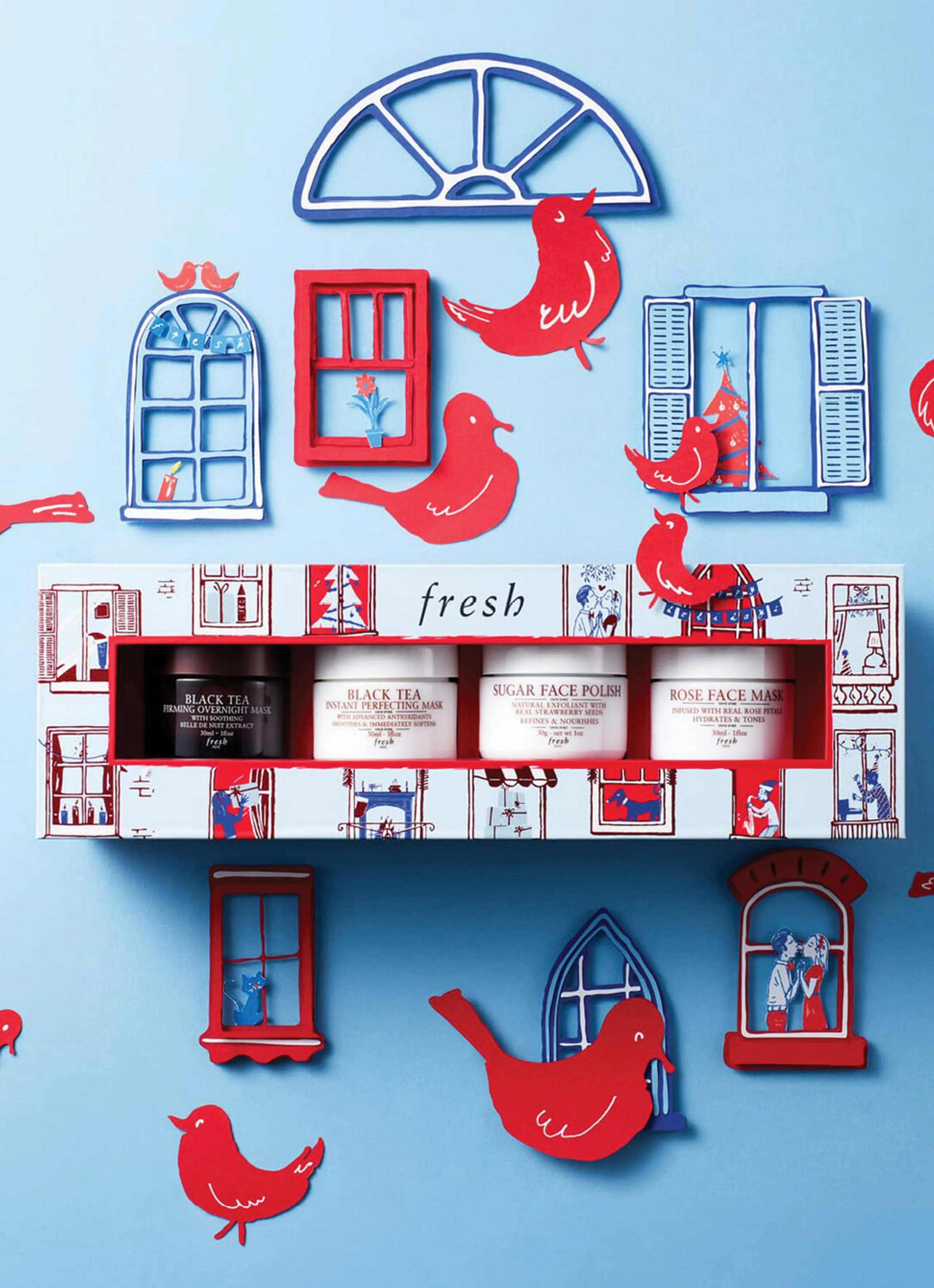 We wanted to capture the essence of the Fresh brand through various storytelling vignettes that add texture, life and warmth to the various season’s. With that, we created cohesive themes and that were carried through all the pertinent gift sets. These themes were eventually animated in store and on video
