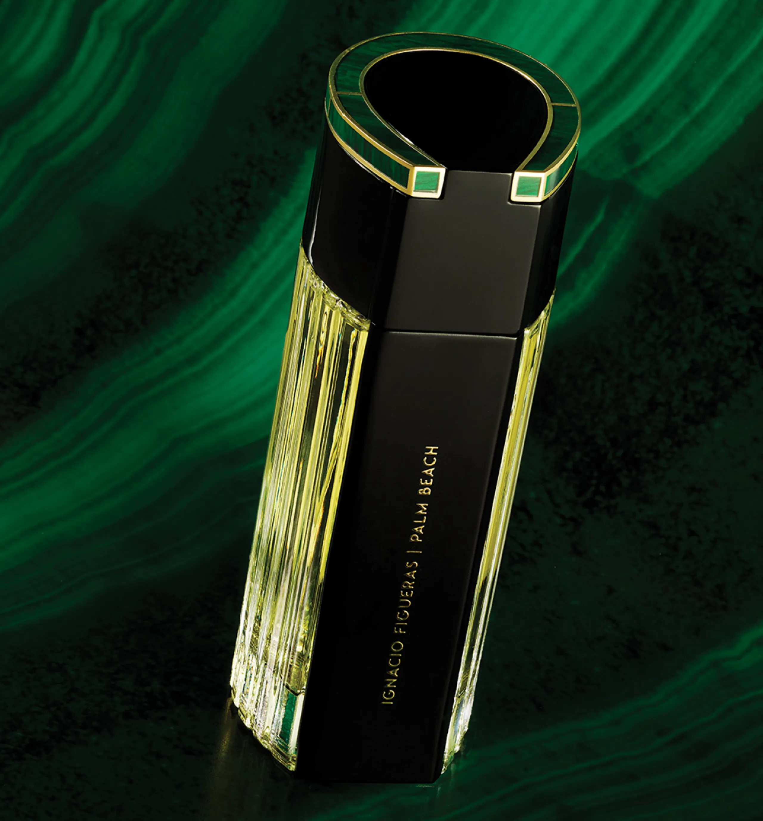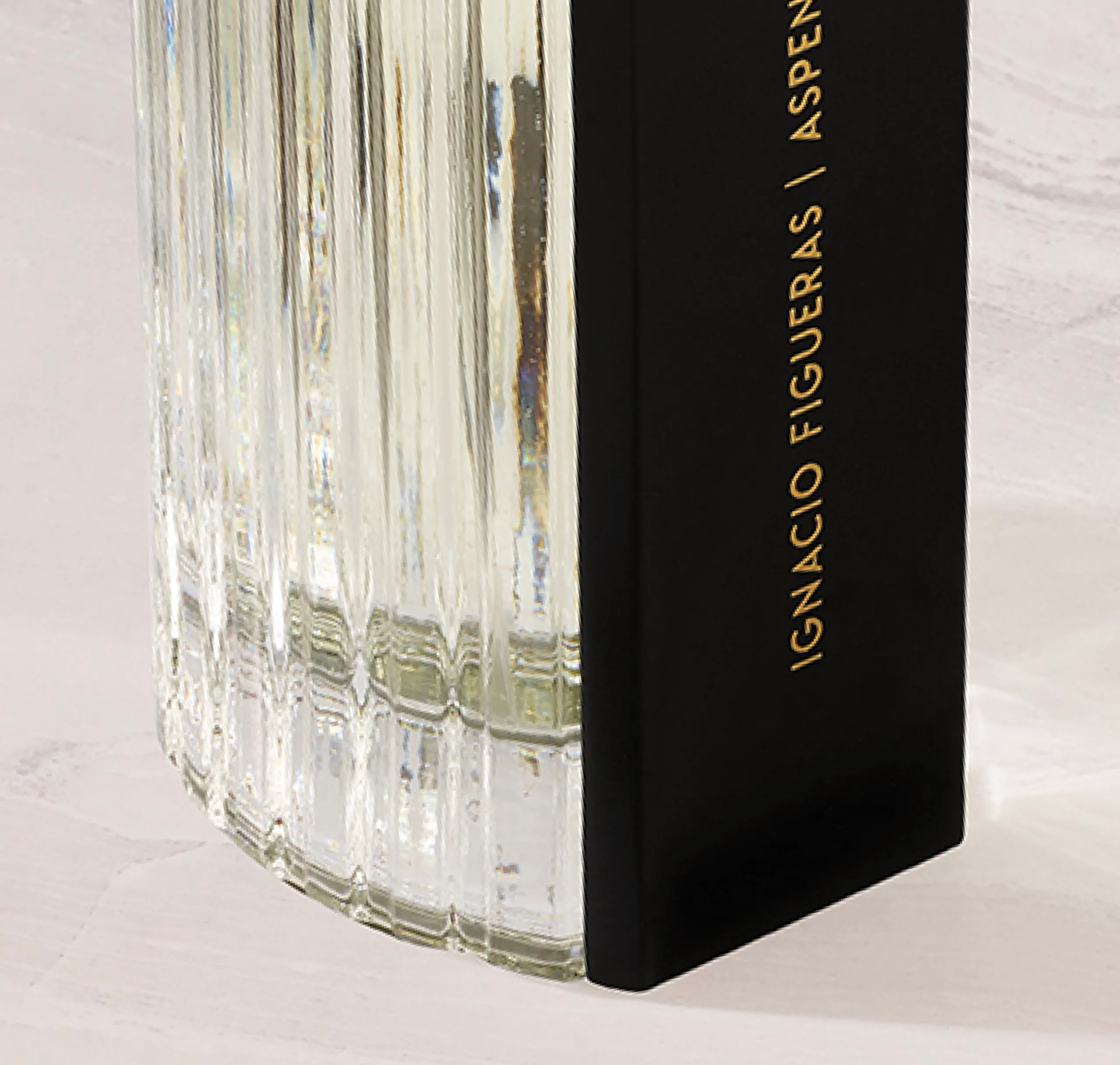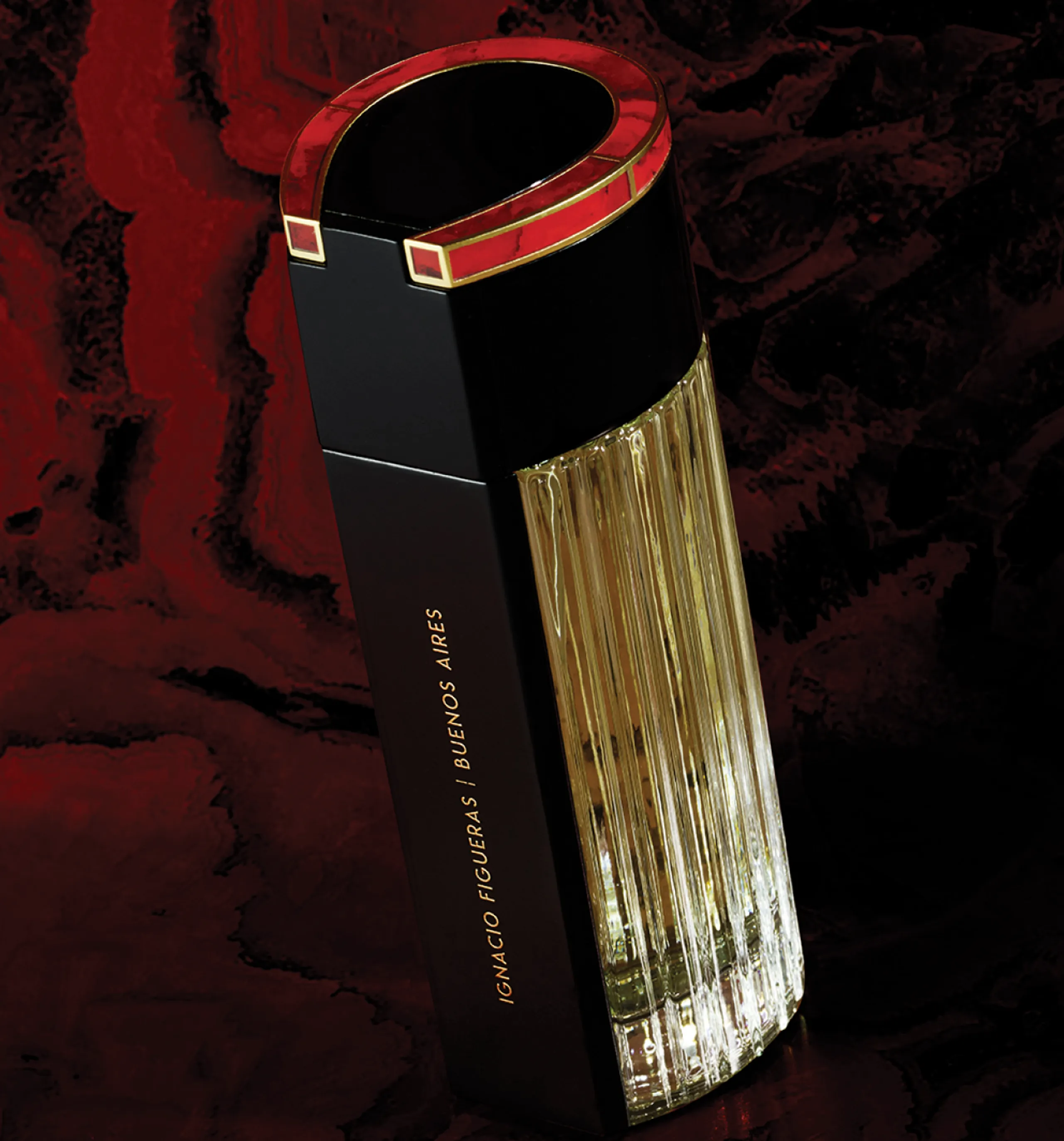 We also took great inspiration from the architecture of his stables in Argentina. The fluted glass and black iron front plate are materials and forms that can be seen throughout his space. Each fragrance is tied to a specific region that Nacho has traveled with his greatest muse, his wife Delfina, as well as his children. Each bottle and fragrance reflects the various persona’s of each location.